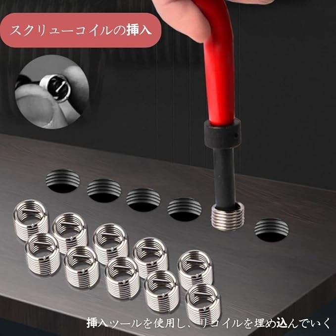 【ネジ穴再生】ネジ穴補修キットは、潰れてしまったネジ穴を再生することが可能です。コイルを挿入することでネジ山を再生するため、補強部品としても利用できます。