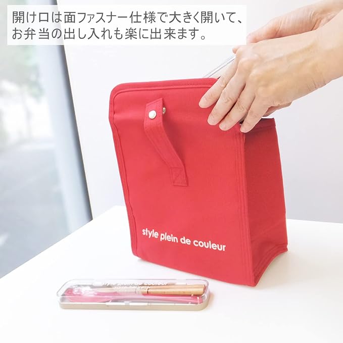 開け口は面ファスナー仕様で大きく開いて、お弁当の出し入れも楽。