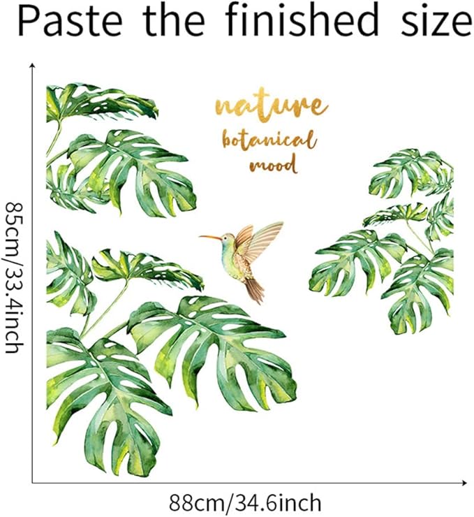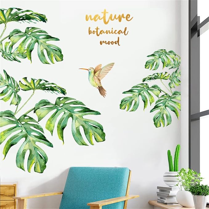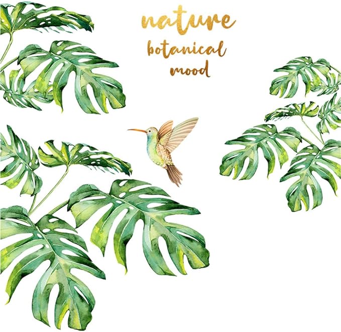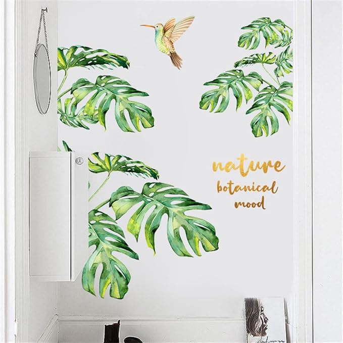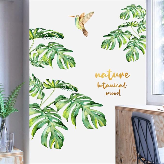 ウォールステッカー 観葉植物 南国 ハーミングバード 緑 景色 壁紙シール はがせる オシャレ 北欧 Nature Botanical Mood ウォールすてっかー 御洒落 リビングルーム 寝室 壁飾り 剥がせる 粘着剤付き