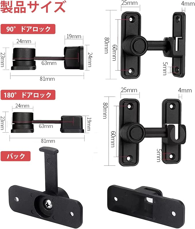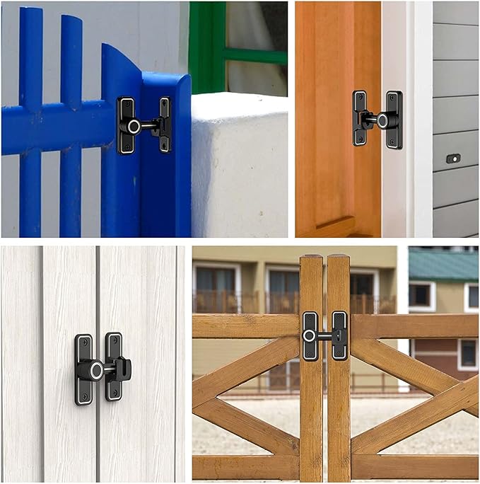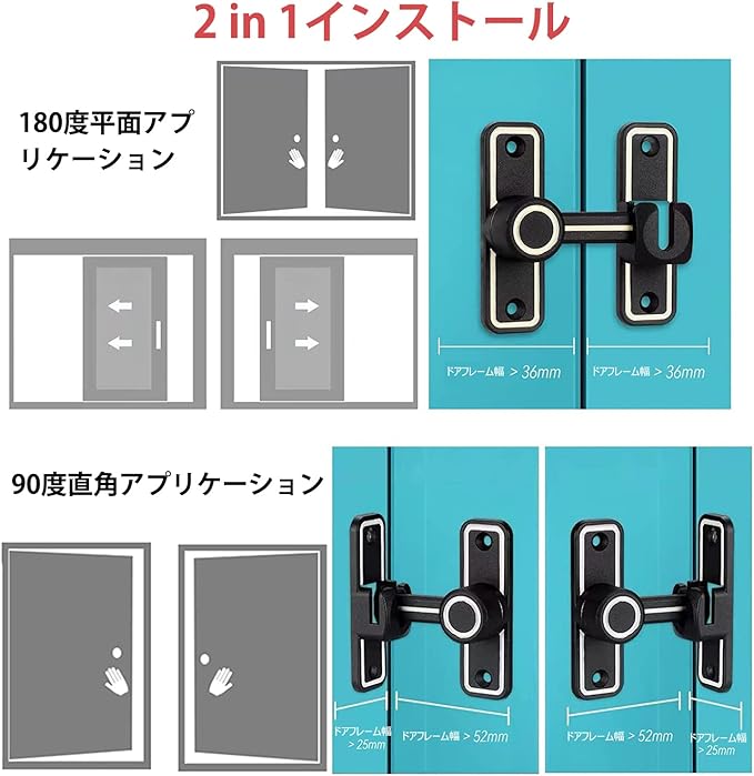 ドアロック 90度 180度 蛍光 ドアバックル ドアラッチ ゲートラッチ 直角ドアバックル 回転式 亜鉛合金 ドア留め金ロック 耐震ラッチ 補助錠 防錆 耐久性 防犯 納屋 引き戸 窓 子供の安全 ペットいたずら防止 3mmシム付属