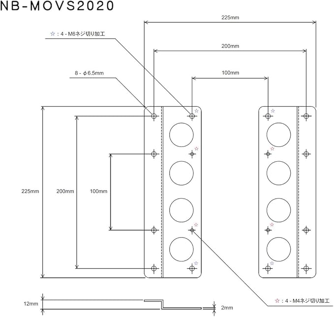 長尾製作所 VESA規格変換プレート モニターアーム スタンド 壁掛け金具等 NB-MOVS2020 黒