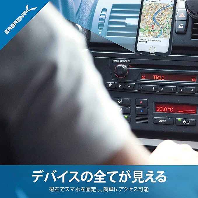 スマートフォンは、私たちが毎日持ち歩く最も使用され、最も価値のあるアイテムかもしれません、それは、私たちが選んだ交通手段です。しかし、残念なことに、この2つは必ずしもうまく調和しているとは限りません。 SABRENTの(CM-MGHB)磁気車のエアベント電話ホルダーのおかげで、運転中に安全かつ合法的にハンズフリーであなたの携帯電話を使用することができます。 音楽を聴いたり、道順を聞いたり、会話をしたりするときにも、電話ホルダーはあなたのデバイスをしっかりと握って、路上での業務を行うことができます。 特徴: - しっかりと安全に車の通気口にあなたの電話をマウントし、簡単な電話のアクセスを可能にするために電話を取るときに、音楽を聴いて、方向などのために電話を使用しています。 - あなたの電話にまたはあなたの携帯電話のケースの後ろにプレートを付着させるインストールが容易 ほとんどのストレートエアベントに適合 パッケージ内容: - マグネット式エアベントマウント - 金属板 - 保護フィルム