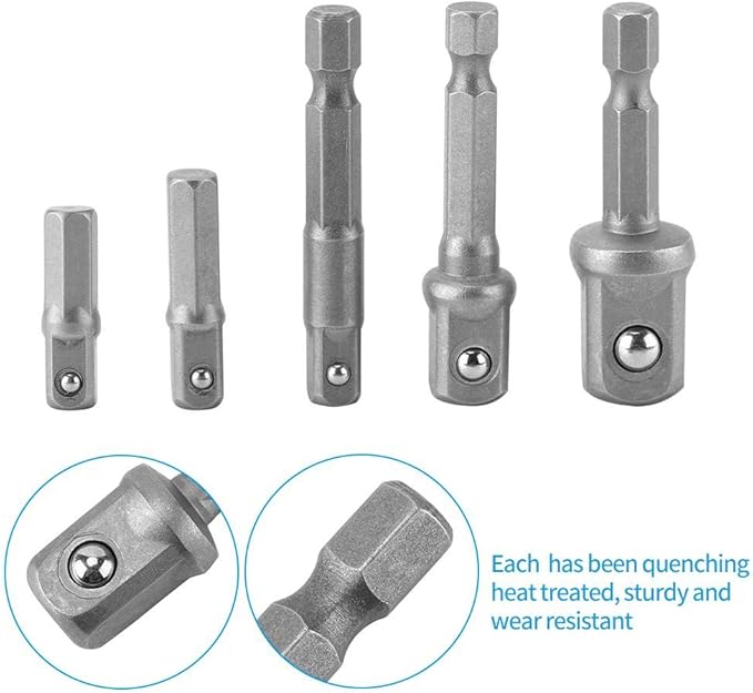 Sixrun 六角軸 ソケットアダプター コンバータ 変換 ラチェット 電動ドリル用 六角シャンク インパクトドライバー用 ボルト・ナットの着脱作業に対応 5本/セット