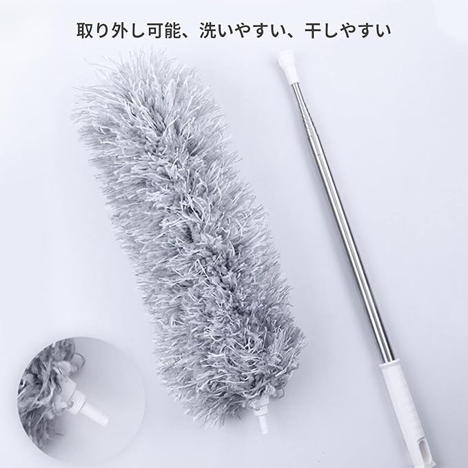 【掃除と保存のしやすさ】ほこり落としのはたき頭は取り外すことができ、ぬるま湯または低温水で手洗いし、乾燥させて保存することができます。洗えば何回でも繰り返し使うことができるため、使い捨てシートタイプよりコスパに優れます。