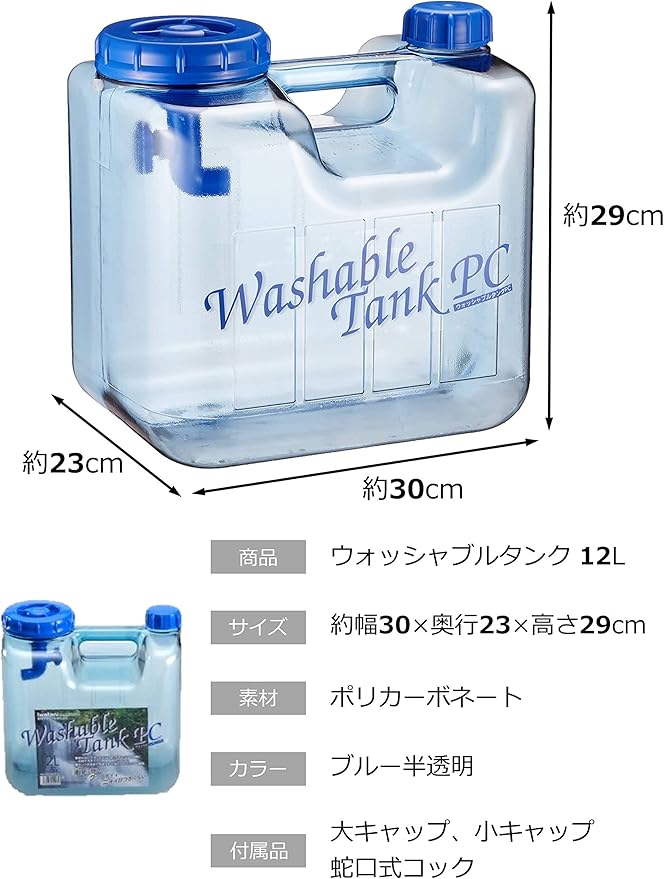 岩谷マテリアル(Iwatani Materials) ウォッシャブルタンク ポリカ 12L 蛇口式コック付 半透明(ナチュラル)