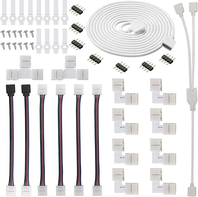 DIYの組み合わせ:RGB延長ケーブルコネクタキット-これは、LEDストリップに最適なアクセサリキットです。複数のコネクタが含まれており、DIYのカラフルなLED照明プログラムで使用され、最高の効果を発揮するすべてのコネクタにほぼ適合します。