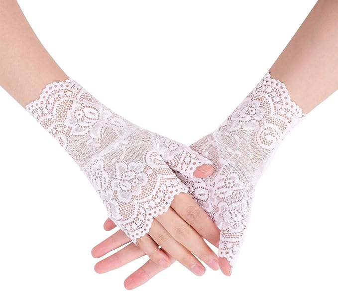 UVカット手袋 レディース手袋 レース 指なし グローブ 日焼け防止 通気 蒸れない スマホ手袋 ショート 指切り てぶくろ おしゃれ 紫外線対策 ドライブグローブ アウトドア ウエディンググ 結婚式 黒 白 2組セット