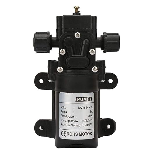 ダイアフラムポンプと高品質:DC 12V 70W 6L / Minダイアフラムポンプ、超高品質、高トルク、優れた性能。高圧セルフプライミングポンプ、低電流。長寿命、漏れなし、安全で信頼性が高い。
