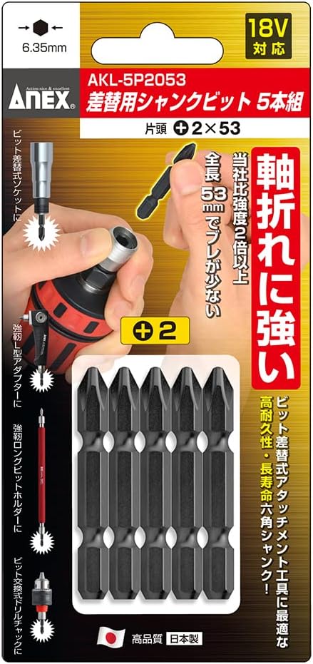 アネックス(ANEX) ビット 片頭 シャンク用 +2x53 5本組 AKL-5P2053