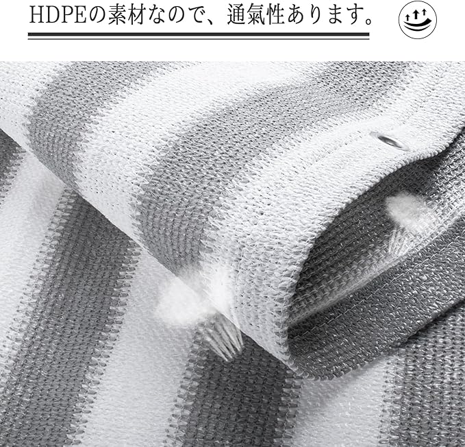 【高品質素材・高級感】 本バルコニーシェードは耐久性に優れた高密度ポリエチレンで、生地の収縮を抑える熱処理も加工も施しましたが、色褪せもしにくく、耐久性が高い製品です。また、手の込んだ縫製、アルミ製のハトメ等に高級感が感じられます。