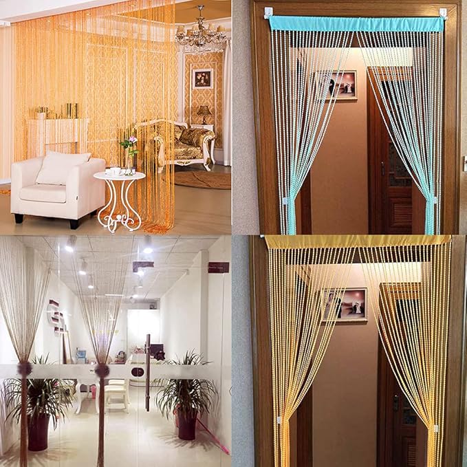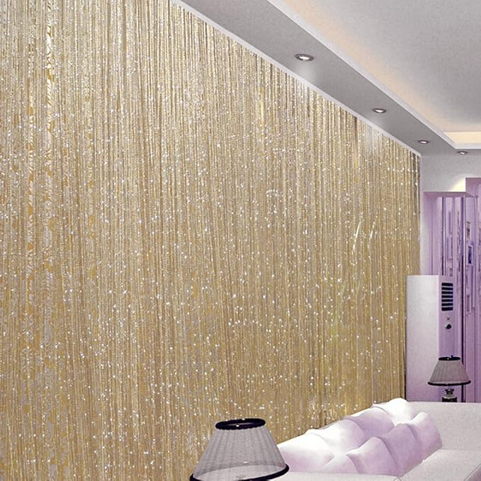 liuzhuo ひものれん おしゃれ 目隠し ストリングカーテン ひもスクリーンカーテン ラインカーテン コードスクリーン 飾り物 豪華 上品 風に揺られて涼しげな雰囲気に (シャンパン色)