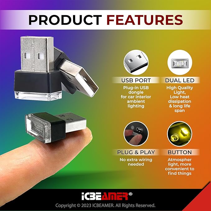 ICBEAMER USBインターフェース ミニチュア ナイトライト 1パック (イエロー) | ユニバーサルプラグインLED 車内とトランクの周囲の雰囲気