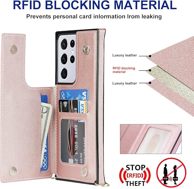 適用 Galaxy s21 Ultra 5g ケース ショルダー 窓口式 カード入れ スマホケース ストラップ付き ぎゃらくしーs21ウルトラ SC-52B カバー 手帳型 斜めがけ 可愛い Galaxys21Ultra ショルダーケース 首かけ 肩掛け かわいい おしゃれ RFIDスキミング防止機能 ロング クロスボディ 携帯カバー ピンク