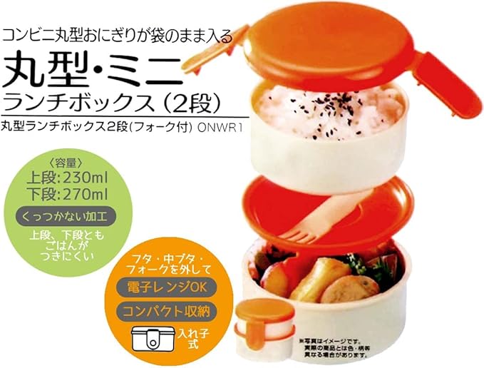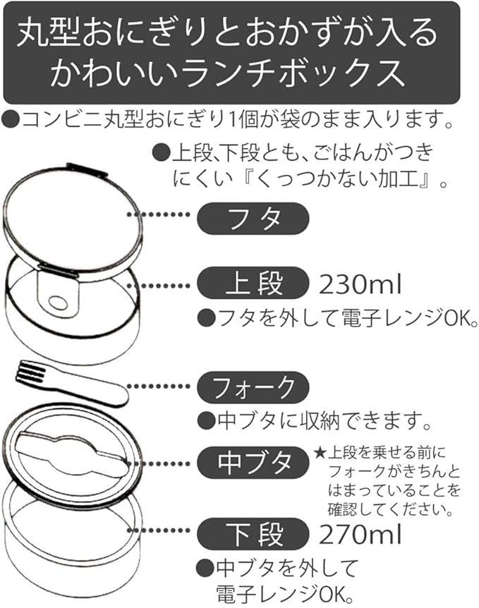 丸型おにぎりとおかずが入るコンパクト2段式ランチボックス