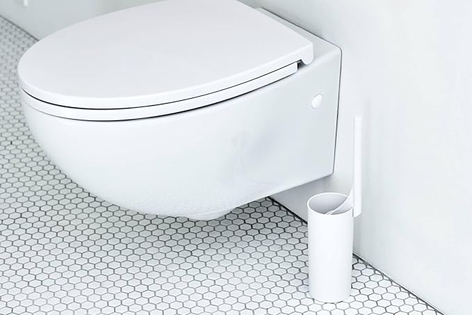 【見た目もクリーンでシンプルな美しい立ち姿】円形のフォルムが美しいトイレクリーナー。衛生用品としてふさわしい清潔感あるホワイトで、狭いトイレスペースにおいても目立たず馴染んでくれます。また、汚れに気付いたらサッと洗えるよう、ブラシの出し入れもスムーズです。