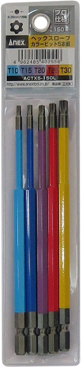アネックス(ANEX) カラービット ヘクスローブ 片頭 150mm 収納付 5本組(T10/15/20/25/30) ACTX5-150L