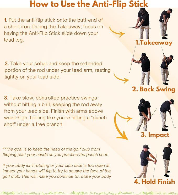 ***ご購入前に必ずお読みください*** ジュニアキッズクラブには適合しません。 Anti-Flip Stickの端は直径1インチ(ゴム製)で、通常すべての標準サイズのグリップにフィットします。 グリップが非常に大きいと思われる場合は、測定することをお勧めします。 *ご注文が発送されると、追加の手順が記載されたEメールが届きます。 * Anti-Flip Stickゴルフスイングトレーニング補助具は、衝撃を受ける前に「反転運動」と戦っているプレーヤーを対象としています。 このゴルフトレーニング補助具は、ゴルフスイング中に体を回転させ続けることを学び、正しいインパクトポジションの適切な感触を与えます。 スイングプレーンのヒント:クラブを戻すときにAnti-Flip Stickがリードレッグを滑り降りると、飛行機での持ち帰りが適切であると感じるのに役立ちます。 手首を適切にヒンジし、クラブを飛行機に乗せる方法を学ぶのに役立ちます。 これを行うことで、衝撃の前にゴルフクラブをひっくり返すのを止めやすくなります。 Anti-Flip Stickゴルフトレーニングエイドを使用する利点