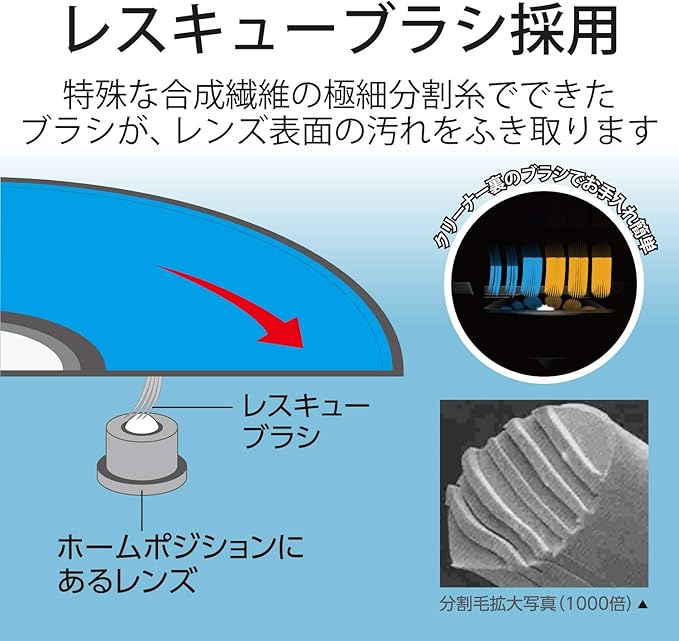 ■ レスキューブラシ採用!ディスクをセットした後のディスク検知時の数回転を利用してレンズをクリーニングできるよう設計されたブラシです。ディスクを認識しないドライブで、ディスクを読み込むきっかけを作ります。