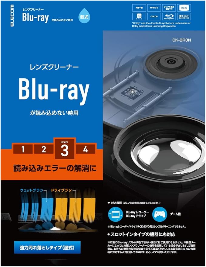 エレコム レンズクリーナー ブルーレイ専用 読み込みエラー解消 湿式 PS4対応 【日本製】 CK-BR3N