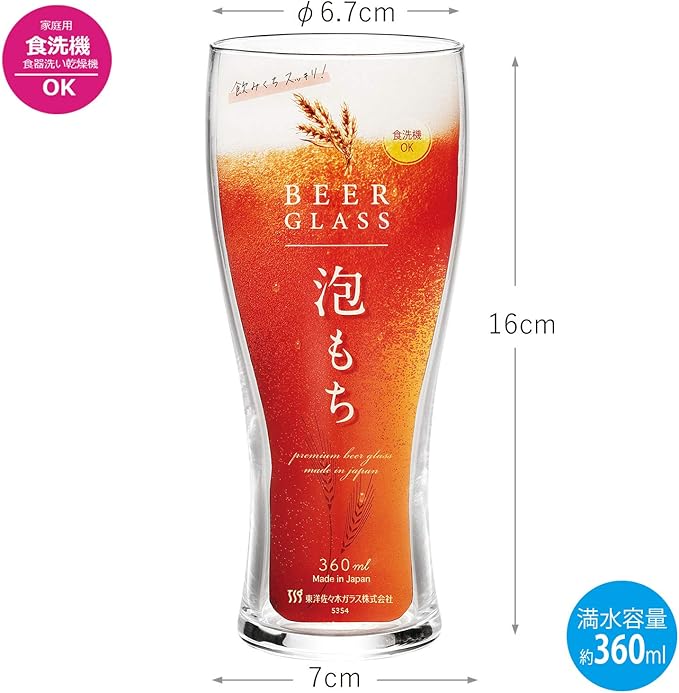東洋佐々木ガラス ビールグラス ビヤーグラス 泡もち 360ml 日本製 食洗機対応 ガラスコップ グラス コップ ハイボールグラス サワーグラス チューハイグラス B-21147-JAN-P