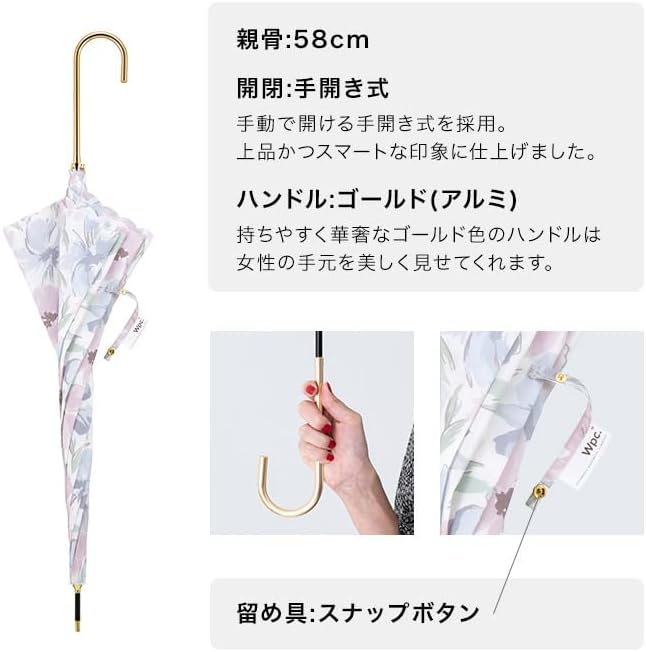 Wpc. 雨傘 フラワーウォール イエロー 長傘 58cm レディース 晴雨兼用 大きい 花柄 パステルカラー おしゃれ 可愛い 女性 通勤 通学 4515-02-001