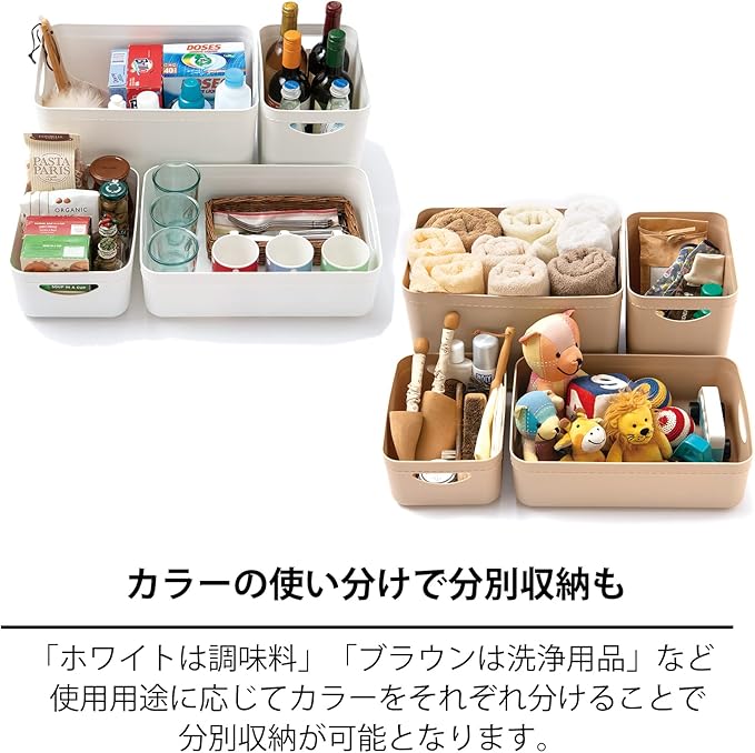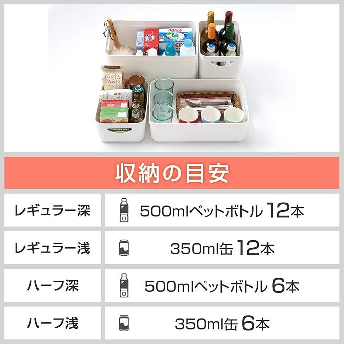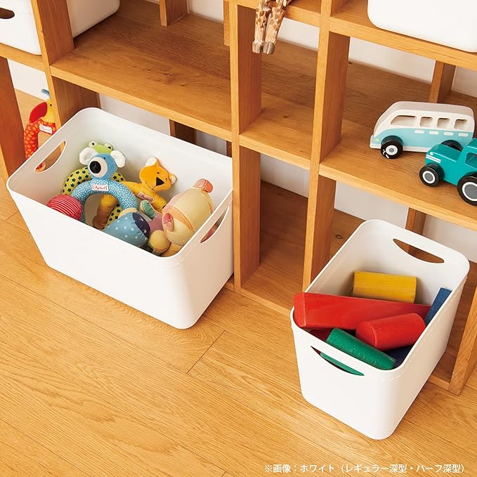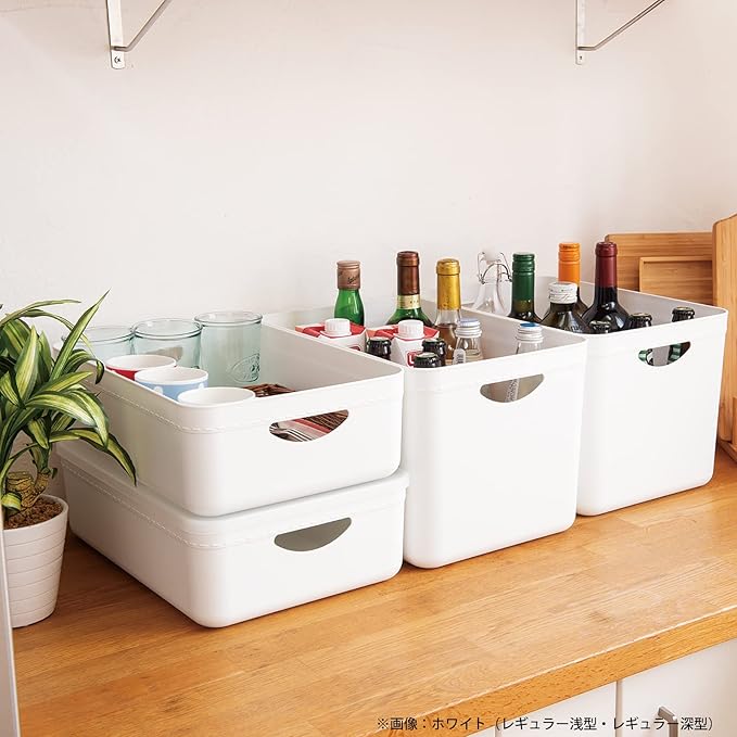 ●柔らかめPEを使用し、布のような柔らかいソフトな触感に仕立てました。●布地を連想させる粗目のシボを採用し、マットな印象でナチュラルインテリアともマッチします。●布製品特有のステッチデザインで柔らかな布製品のテイストを再現しました。●別売りのフタを付ければスタック可能です。●レギュラーの上にハーフが2個乗せられます。●カラーボックス内、パントリー内の収納に最適。●棚の小物整理に便利です。●多目的収納・小物収納に。