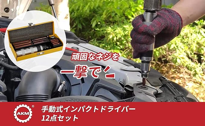 AKM インパクトドライバー ネジとり なめたネジ折れたネジ外し 1/2(12.7mm)ショックドライバー S2合金鋼 エキストラクター 逆タップ バイク 車 機械修理 12点セット