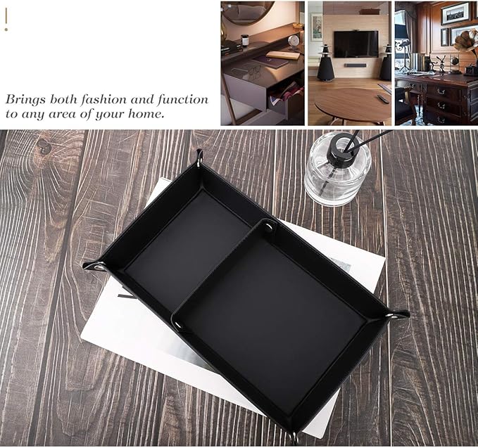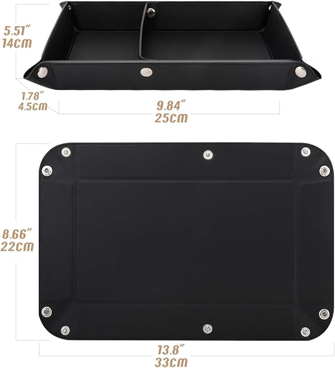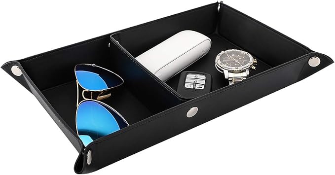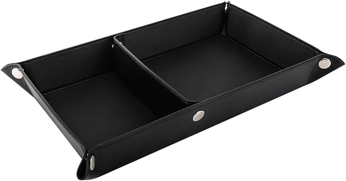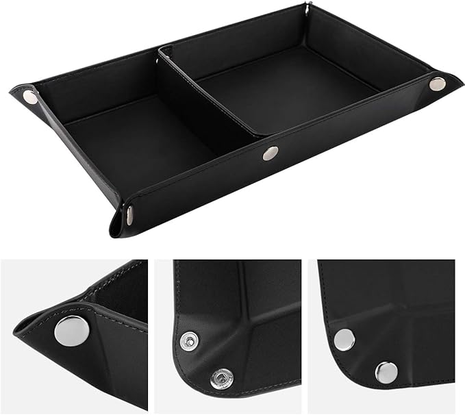 小物トレー レザートレイ Luxspire ボタントレー PUレザー アクセサリートレー 長方形 卓上トレイ 折り畳み式 小物置き メガネ入れ 仕切り 鍵置場 時計置場 ジュエリーケース アクセサリー収納 革トレー コイン・指輪・ピアス 小物入れ ブラック