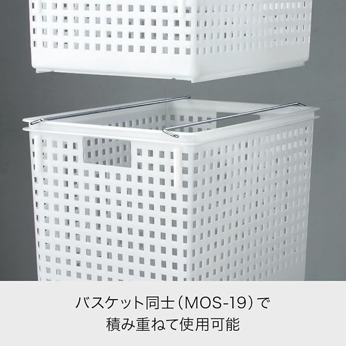ライクイット (like-it) 収納ボックス 組み合わせて使える バスケット ワイドL ホワイト 日本製 MOS-19 奥行き約46.5cm クローゼット メタルラック 衣類 引出し キャスター取り付け可