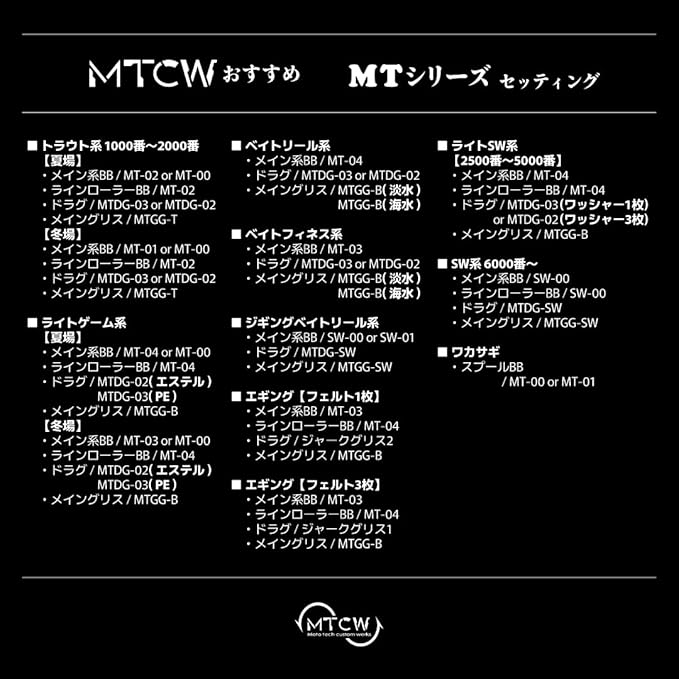 メーカーおすすめMTシリーズセッティング(目安番手):【オールラウンド対応 (マメアジ・ライトゲームにおすすめ)】