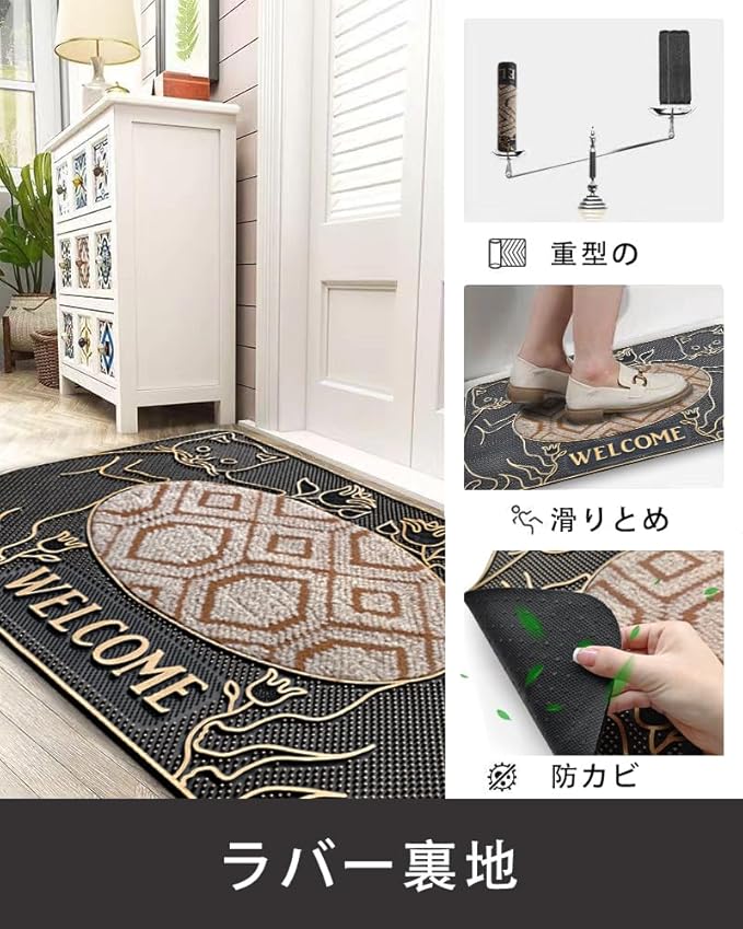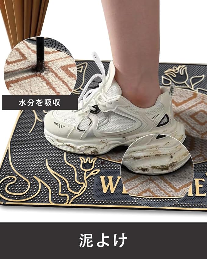 天然ゴムとマイクロファイバー(コットン)製の入り入り口ゴムは、庭の入り口、階段、屋外、室内、会社、ショップ、学校、幼稚園、ペットハウス、キッチンなど様々なシーンで活躍します。 主な機能は、防水、吸油、泥除け効果抜群です。 速乾綿質に吸水、吸油、吸じん、10秒で水分を吸い取る。 デコボコのラバーに、ソールの泥は、泥よけとして、ソールの泥をきれいに拭き取ることができます。 削り出した泥は自動的に凹面に落ちて、踏み付けると屋外にある泥が室内に進みません。 滑り止め効果も良いです,自体のマット重さが1.5kgを超えて,気楽にならず,底位置にも突起の粒を有し,専門滑り止めテストされ,120n以上に耐えられ,家庭でも妊婦さんでも安心して使えます。 洗浄も便利で、水を一気に流したり、掃除機で掃除したり、手でたたいて底を叩いても楽で、水で一流して13分で使えます。 鼻のニオイもなく、変形もしやすい、型でプレスして、丈夫です。 フロアシートの厚みは1cmなので、ドアを縫い付けず、どんなシーンでも活用できます。