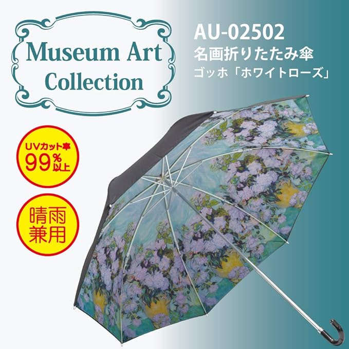 ユーパワー 傘 マルチカラー 49cm(親骨長) 折りたたみ傘 名画シリーズ ゴッホ「ホワイトローズ」 AU-02502