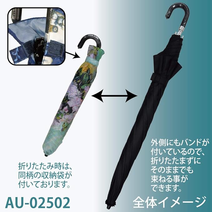 雨の日も晴れの日も名画を連れて出かけよう…。●雨の日も晴れの日もお使い頂ける晴雨兼用。●傘の外側にもバンドが付いているので、折りたたまずにそのままでも束ねられて便利。●親骨はグラスファイバーを使用しており、軽量で屈曲性に富み折れにくいです。●同柄の収納袋付きです。●開閉ボタンは手が痛くなりにくい安全ロクロ仕様です。●晴雨兼用、UVカット率99%以上。