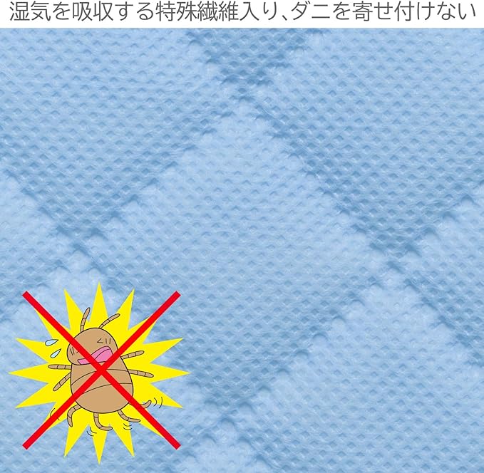 ●湿気を吸収する特殊繊維入りで、吸湿することでダニの繁殖を抑制しダニを寄せ付けない。