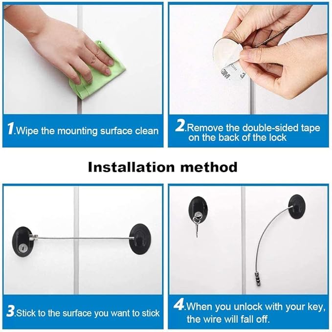 多機能:冷蔵庫ロック、キャビネットロック、ヘルスケアセキュリティロック、プリンタートレイロック、ペーパートレイロック、ファイル引き出しロック、食器棚ロック、物置ロックなどに。