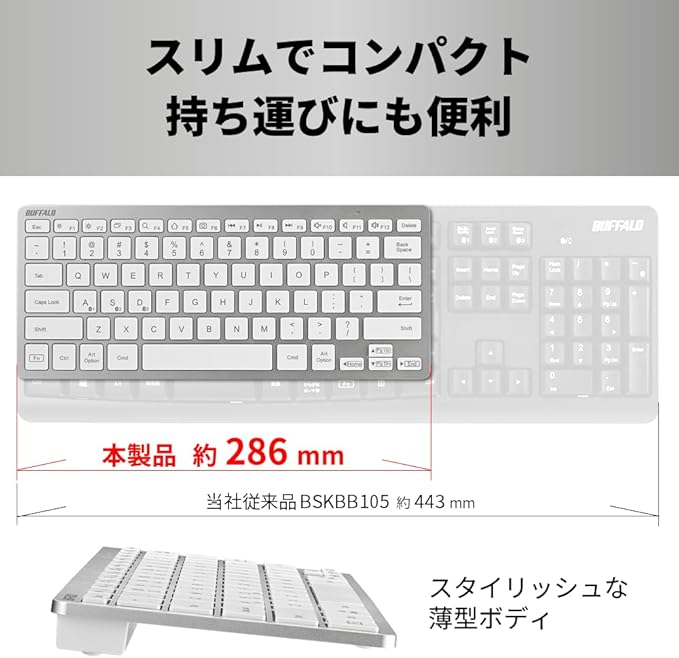 バッファロー Bluetooth5.0対応 コンパクト キーボード PC/Windows/Mac / iPhone16 対応 リモート テレワーク 在宅 US配列 シルバー BSKBB335SV