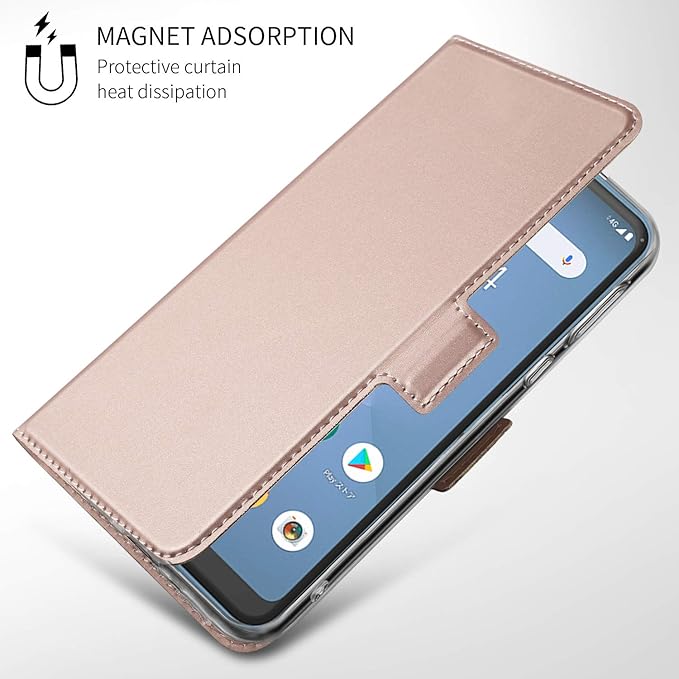 For シャープ SHARP AQUOS Sense3 / Sense3 Lite / Sense3 basic ケース 手帳型 スタンド Android One S7 カバー 【ELMK】合成皮革 内蔵マグネット 携帯カバー カードポケット スタンド機能 (ゴールド)
