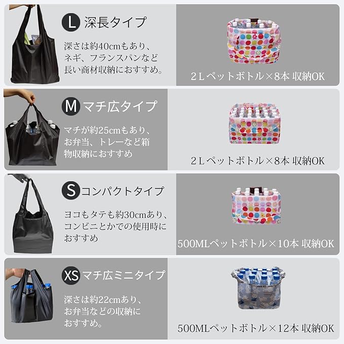 [BIGHAS] エコバッグ 買い物袋 買い物バッグ 折畳たたみ コンビニ レジカゴ マチ広 手提げ 肩掛け 軽量 深長 コンパクト 黒 丈夫 メンズ レディース