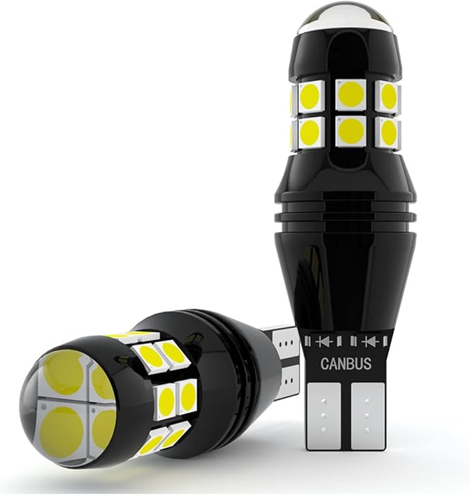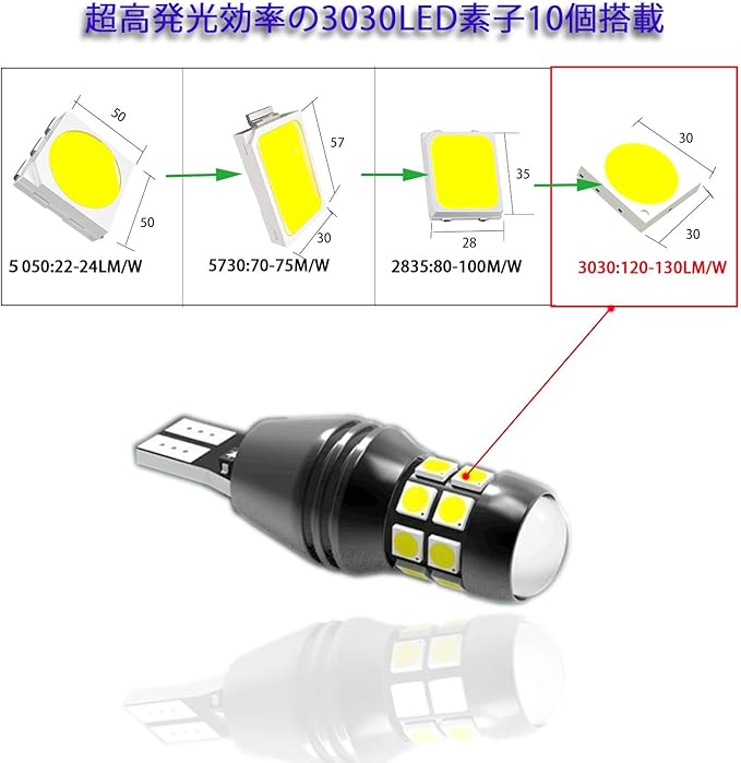 【T16 LED ホワイト 2個】バックランプとしか使われません。最先端超高発光効率の3030LED素子20個搭載、360 全方位照射でき、CANBUSキャンセラー内蔵で大部分車種はエラーフリー、12V/24V車用T16バルブ2個セット。