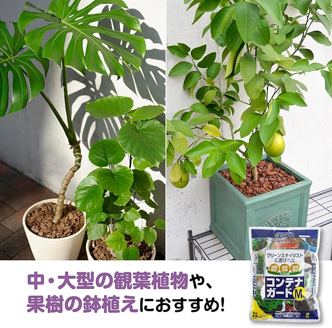 ●明るいブラウンのチップがコンテナの植物を美しく引き立たせます