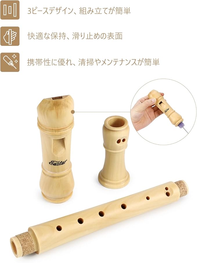 Eastar ソプラノリコーダー メイプル製 C調 小学校 ケース&お手入れセット付 初心者にも (ジャーマン式) ERS-31M
