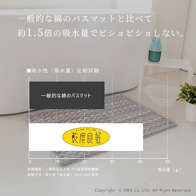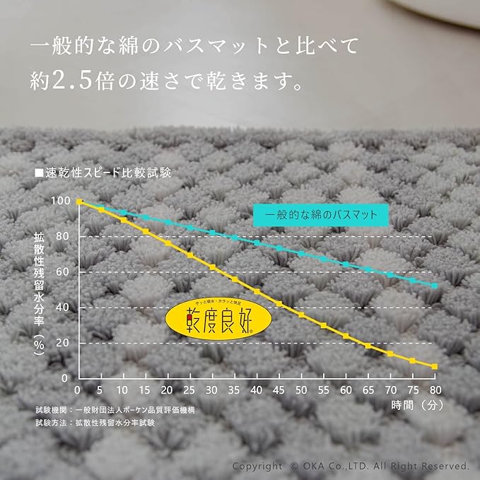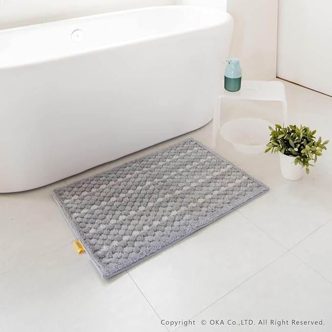 オカ(OKA) 乾度良好 抗カビプラスバスマット 約45 60cm グレー(吸水 速乾 抗菌防臭 かんどりょうこう 足ふきマット)