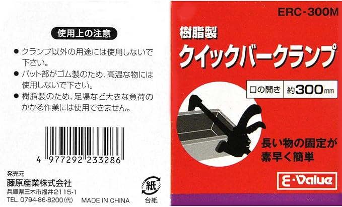 E-Value クイックバークランプ ERC-300M 素早く簡単に固定 奥行48 高さ20.5 幅3.3cm