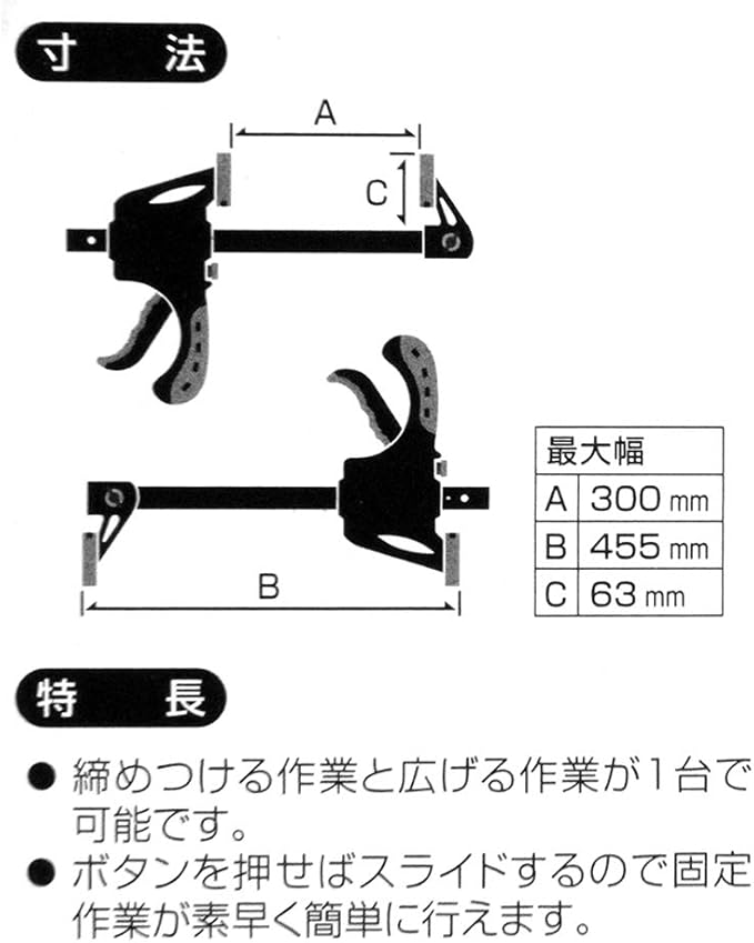 ・クランプ部を差し替えることにより、締め付ける作業と広げる作業が1台で可能