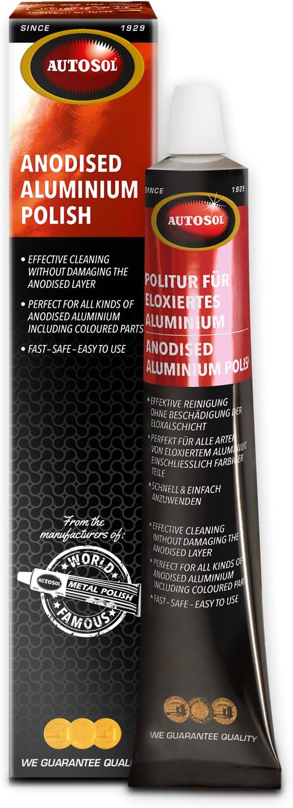 【安心の品質】オートソルのアノダイズドアルミニウムポリッシュは、ドイツの厳しい品質基準をクリアしたアルマイト専用の磨き剤です。あなたの愛車やバイクのアルミアルマイト部分をピカピカに磨き上げ、新品同様の輝きを取り戻します。