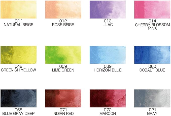 顔彩耽美の新色12色となります。淡い中間色を中心としたセットです。