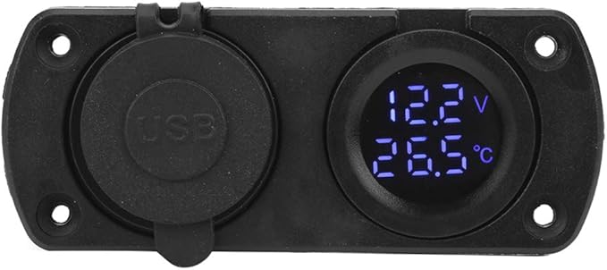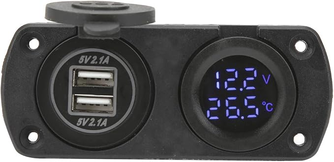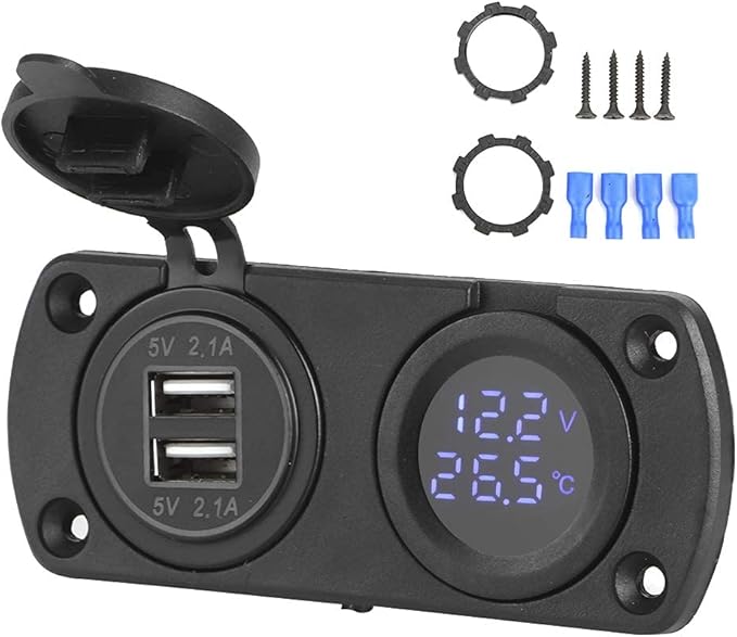 Elerose 温度電圧計車の充電器12-24V、温度電圧計充電器車デュアルUSB12V電源コンセントシガーライターソケット(青)