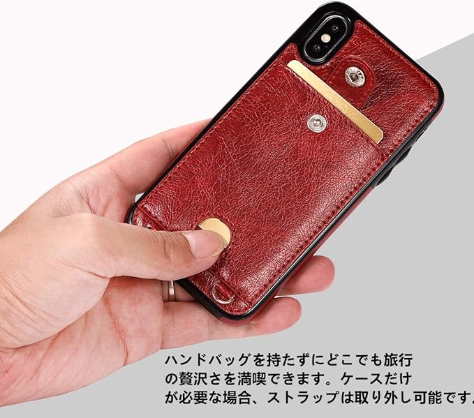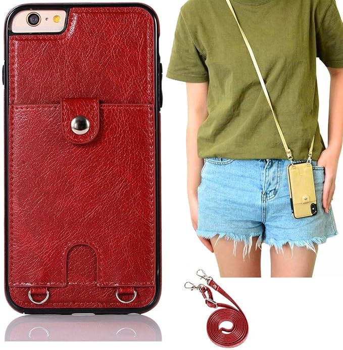 iPhone 6/iPhone 6S スマホ ケース 肩掛け 首かけ 斜めがけ ショルダー iPhone 6S 縄掛け ケース PU レザー iPhone 6s カード収納 iphone 6s 手帳型 カバー iPhone 6 カバー iPhone 6 背面 手帳型 高級PUレザー iPhone 6 財布型 Cavor 携帯ストラップ付き Qi充電対応 背面ポケット付き 調整可能 紛失 落下防止 滑り止め 多機能 落下保護【首かけ 斜めがけ-レッド】