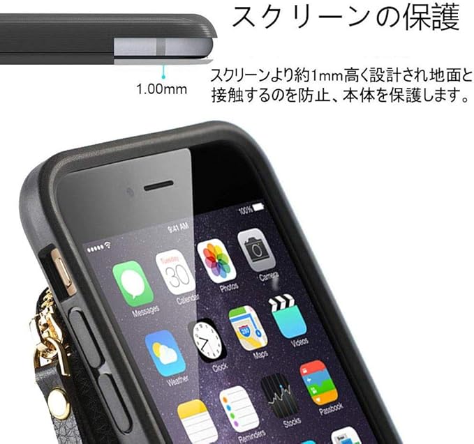 【財布として使用可能】 4枚のカード、ケース背面にはカードポケット 1。ケースに合皮を直接貼り付けています。カードポケットが付き、背面フラップはスナップボタンでしっかりと留まるため、カードを入れても落としにくく安心です、片手で開閉できる。