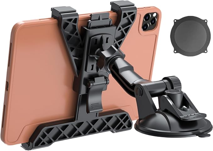 【7-10.5インチのタブレットに対応 タブレット車載ホルダー】このタブレットホルダーは上下支持部の長さが約11~21CM、下の短辺が約10CM、爪の厚さが最大約1.6CMです。(2〜3mmの誤差は正常です)購入前に上記のデータを参照してください。ipad/ipad mini/ipad air/kindle/Galaxy Tab/ Fire HD 10など端末に対応できます。